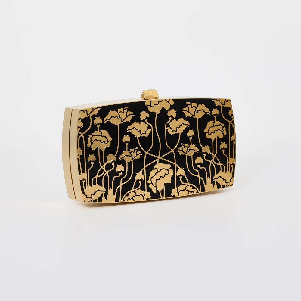 Nature is forever a source of inspiration, particularly how flora and fauna grow. The Earth Life clutch, features enameled abstract flowers, set on a deep backdrop, in a goldplated case.